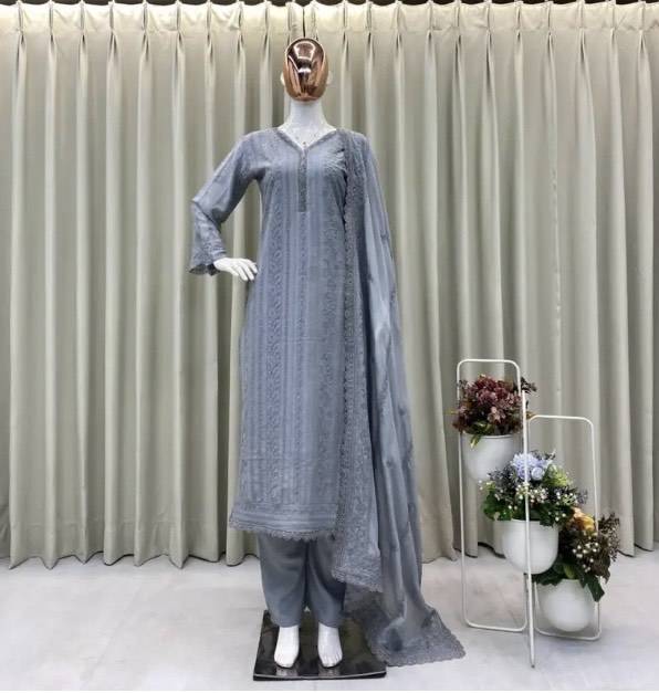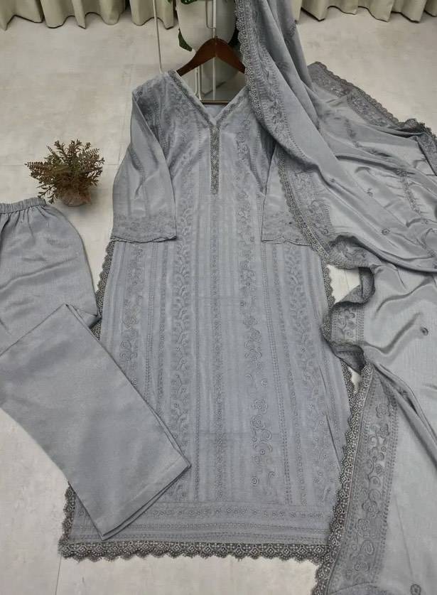 Elevate your ethnic wardrobe with our Embroidered Chikankari 3 Piece Chinon Kurta Set, an exquisite addition to the Salwar Kameez collection. This stunning ensemble features intricate Chikankari embroidery, showcasing traditional craftsmanship that perfectly blends heritage with contemporary style.