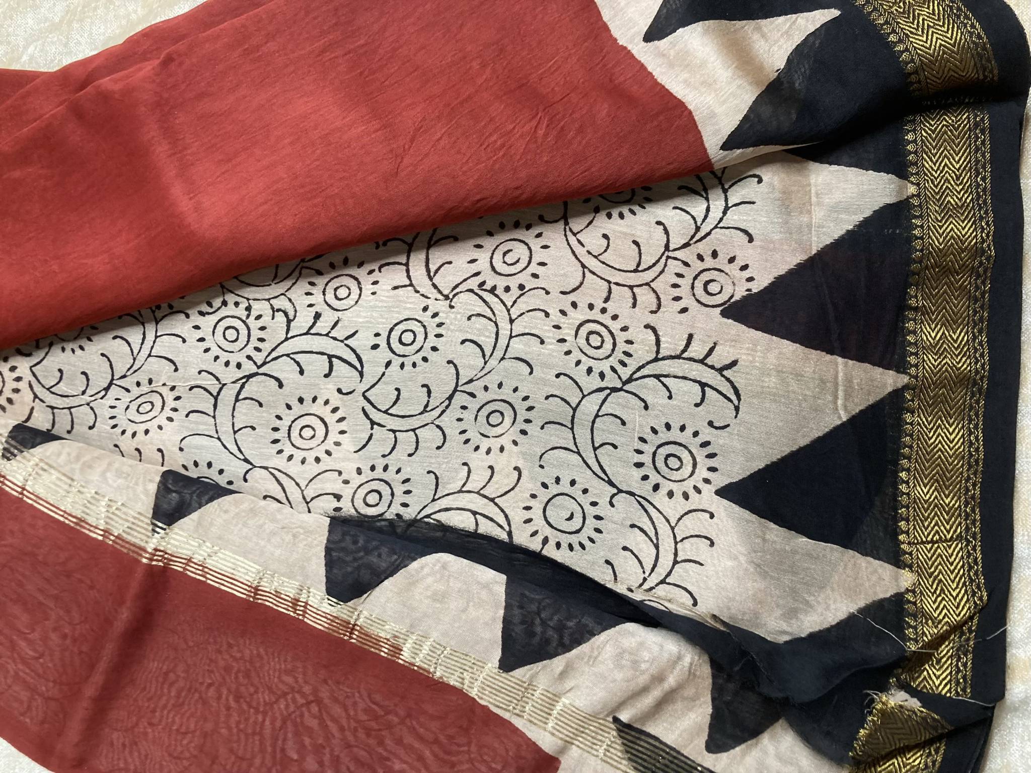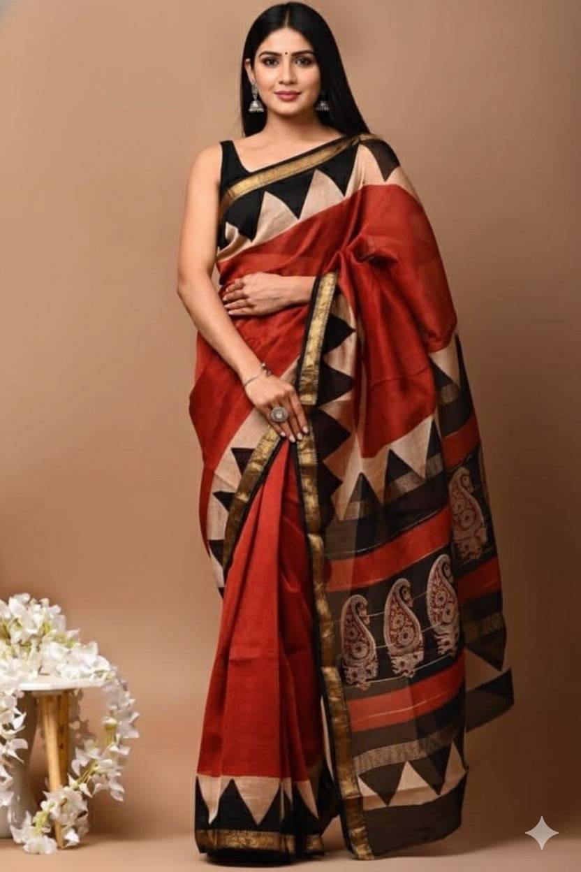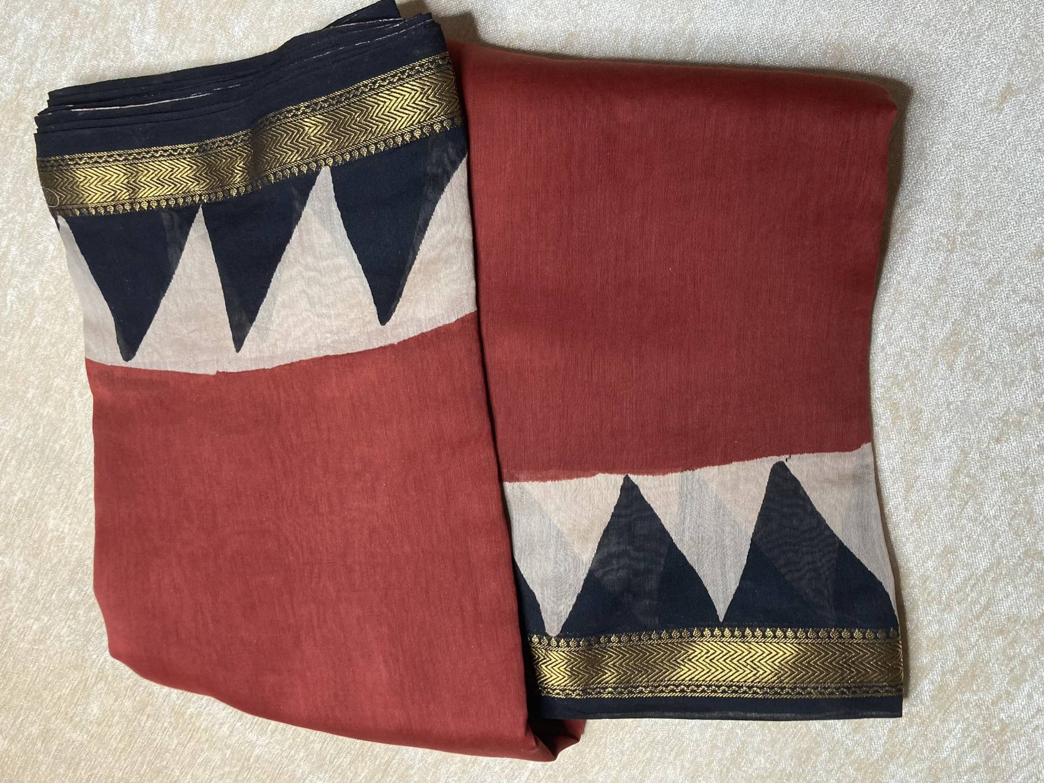 HAND BLOCK PRINTED MAHESHWARI SILK SAREE WITH BLOUSE PIECE