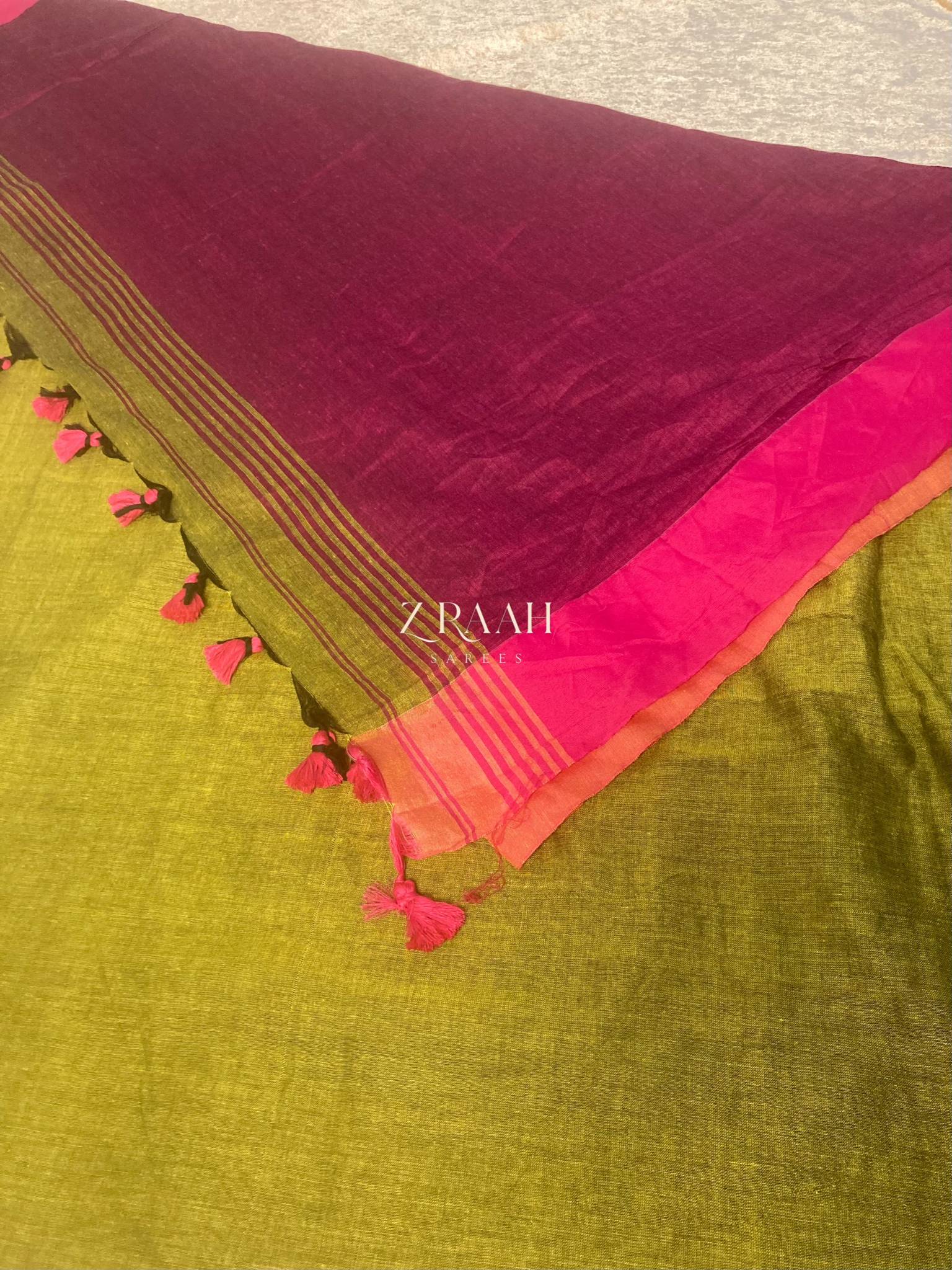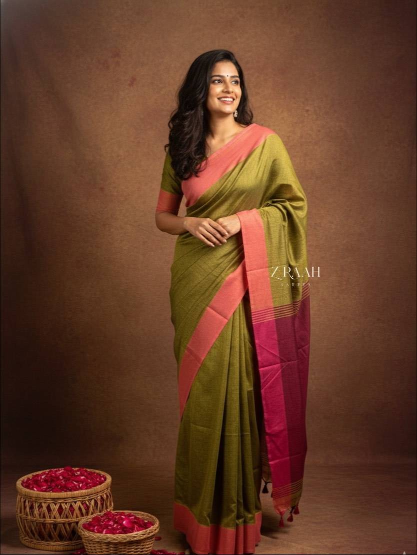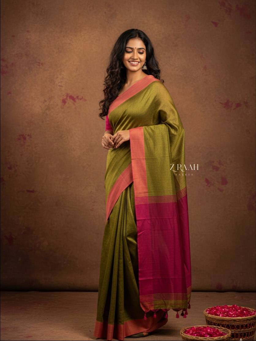 Handloom Pure Cotton Saree in Contrast Pallu
