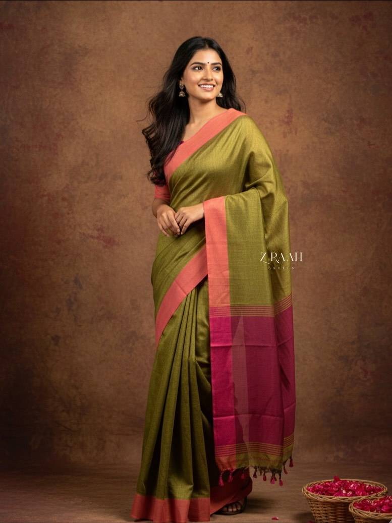 HANDLOOM PURE COTTON SAREE IN CONTRAST PALLU WITH BLOUSE PIECE / SAREE LENGTH 5.50 Mtr , BLOUSE LENGTH 0.80 Mtr
