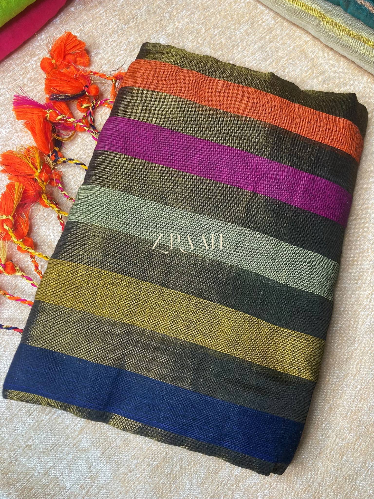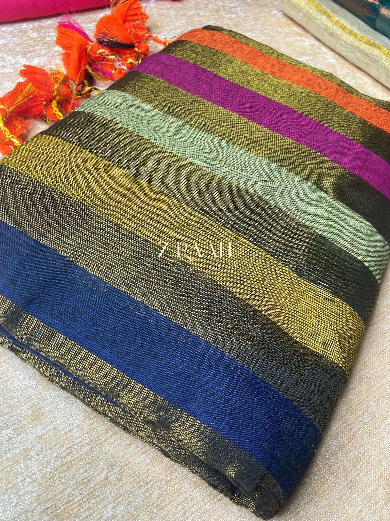KHADI COTTON MULTICOLOR STRIPED SAREE WITHOUT BLOUSE - 5.50 Mtr