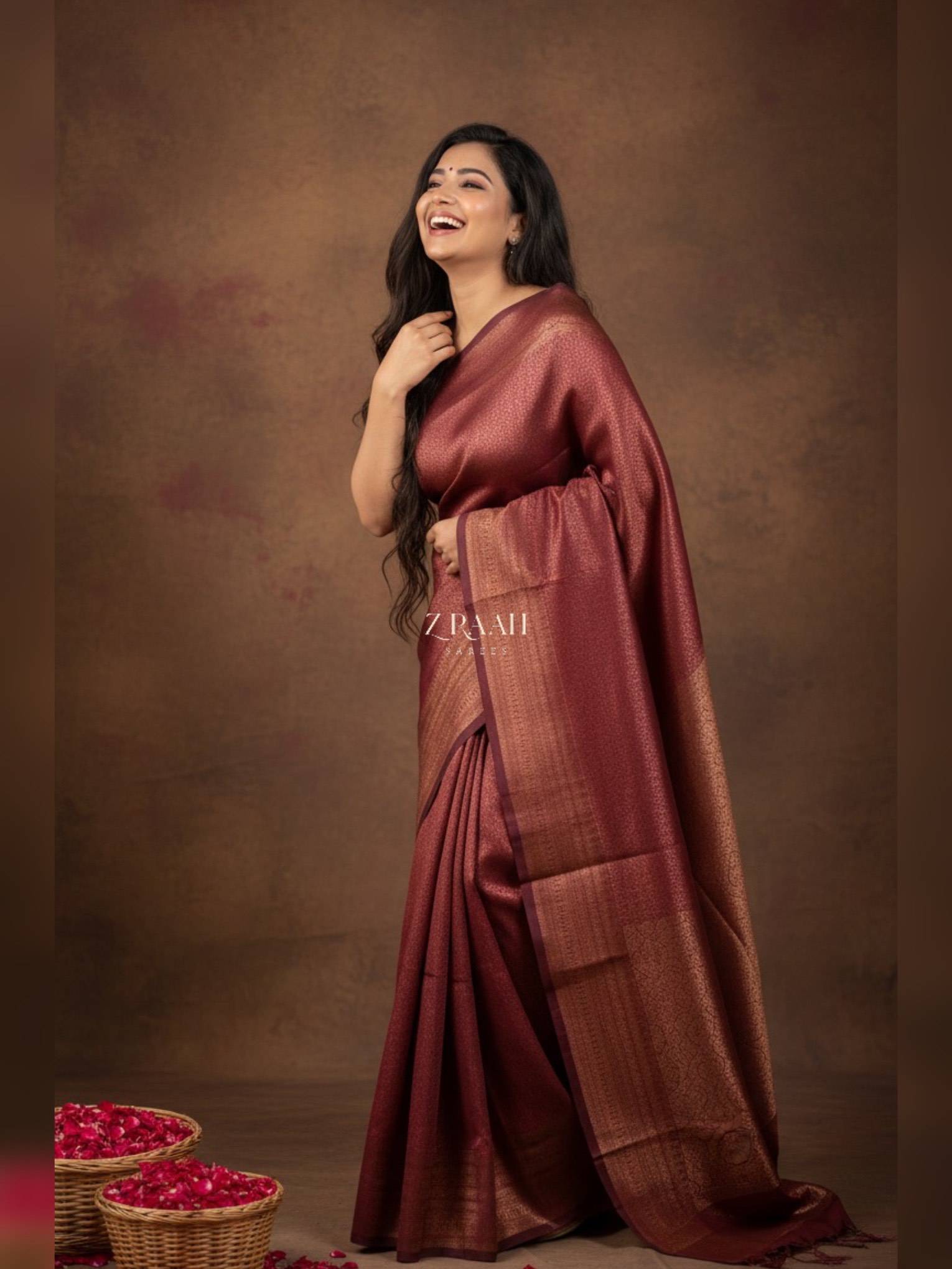 LICHI SILK SAREE WITH JACQUARD WEAVING AND RICH GOLDEN ZARI WORK/MAROON TONE WITH RUNNING BLOUSE PIECE