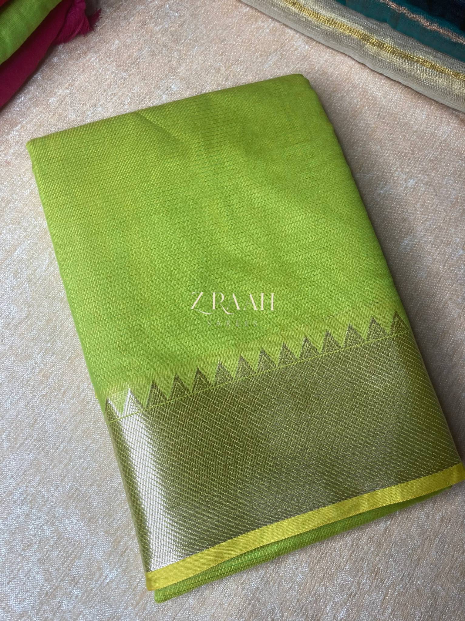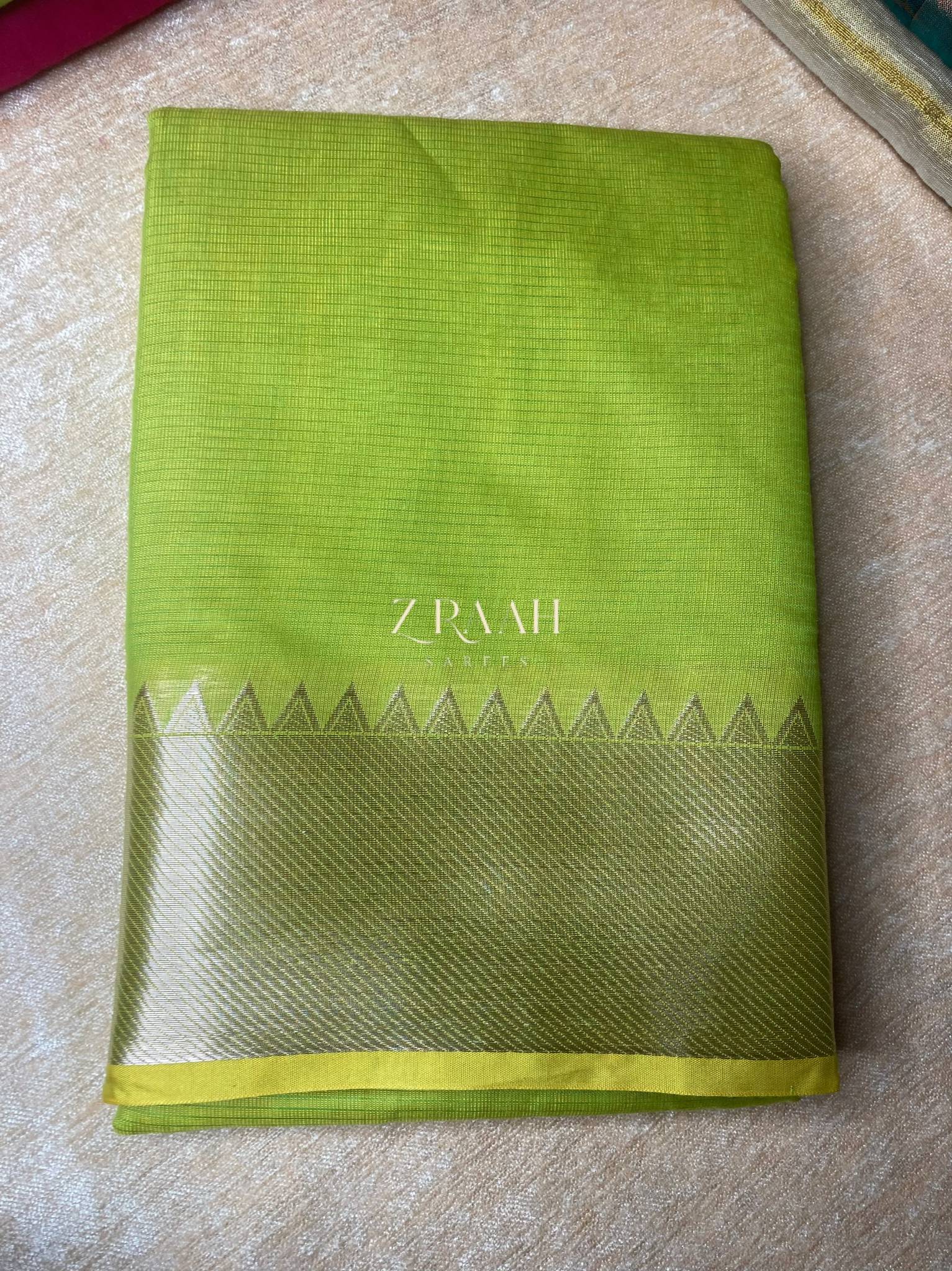 Elevate your traditional wardrobe with our exquisite Mangaliri Silk Saree, designed for elegance and sophistication. This stunning saree features a beautiful silver zari border that adds a touch of glamour to your ensemble.