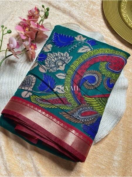 Polyester Viscose Chanderi Kalamkari Print Designer Saree