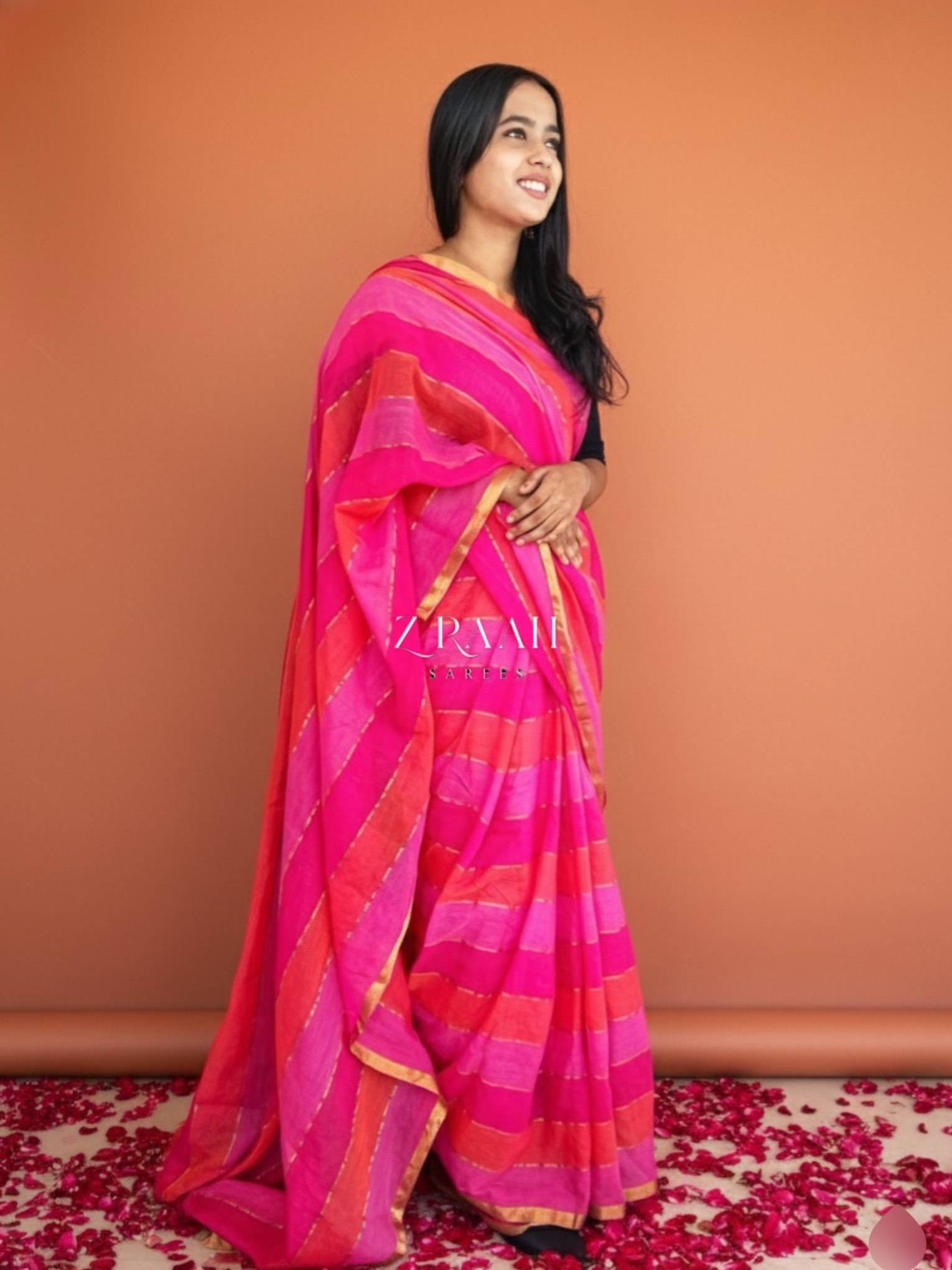 PURE MUL COTTON MULTICOLOURED SAREE WITHOUT BLOUSE PIECE / LENGTH 5.5 mtr SAREE(550.00cm),WIDTH 1.20mtr (120cm)