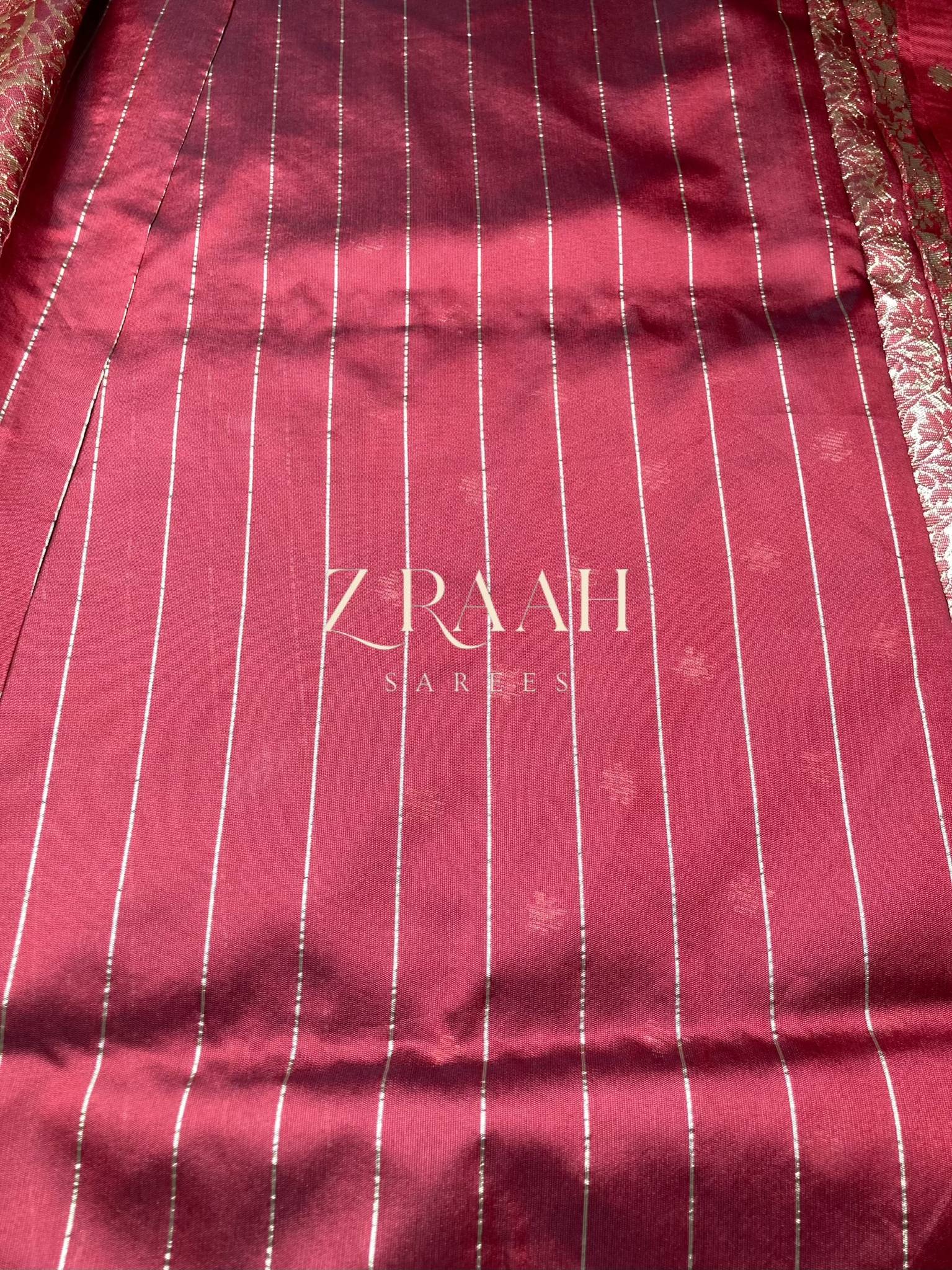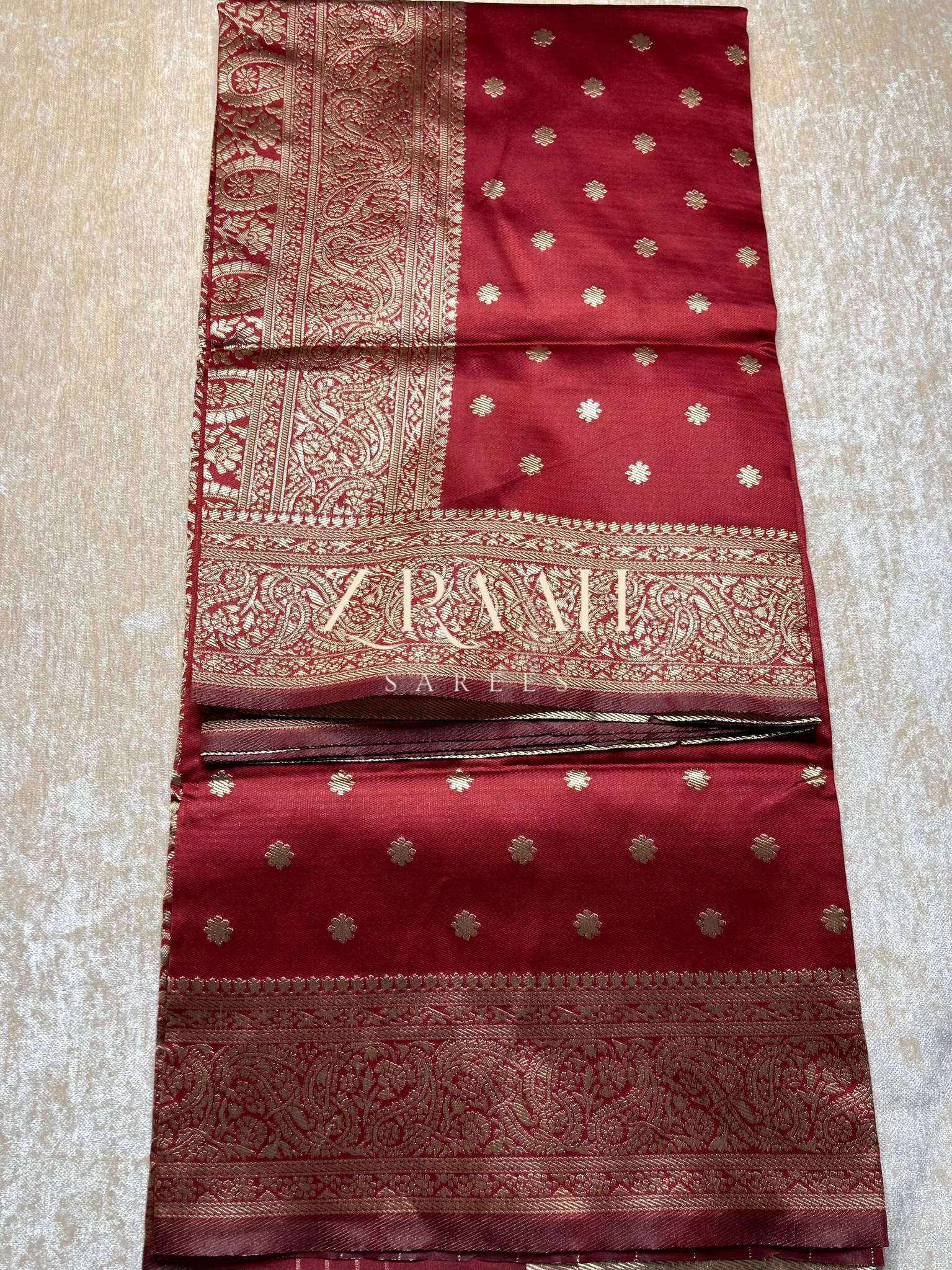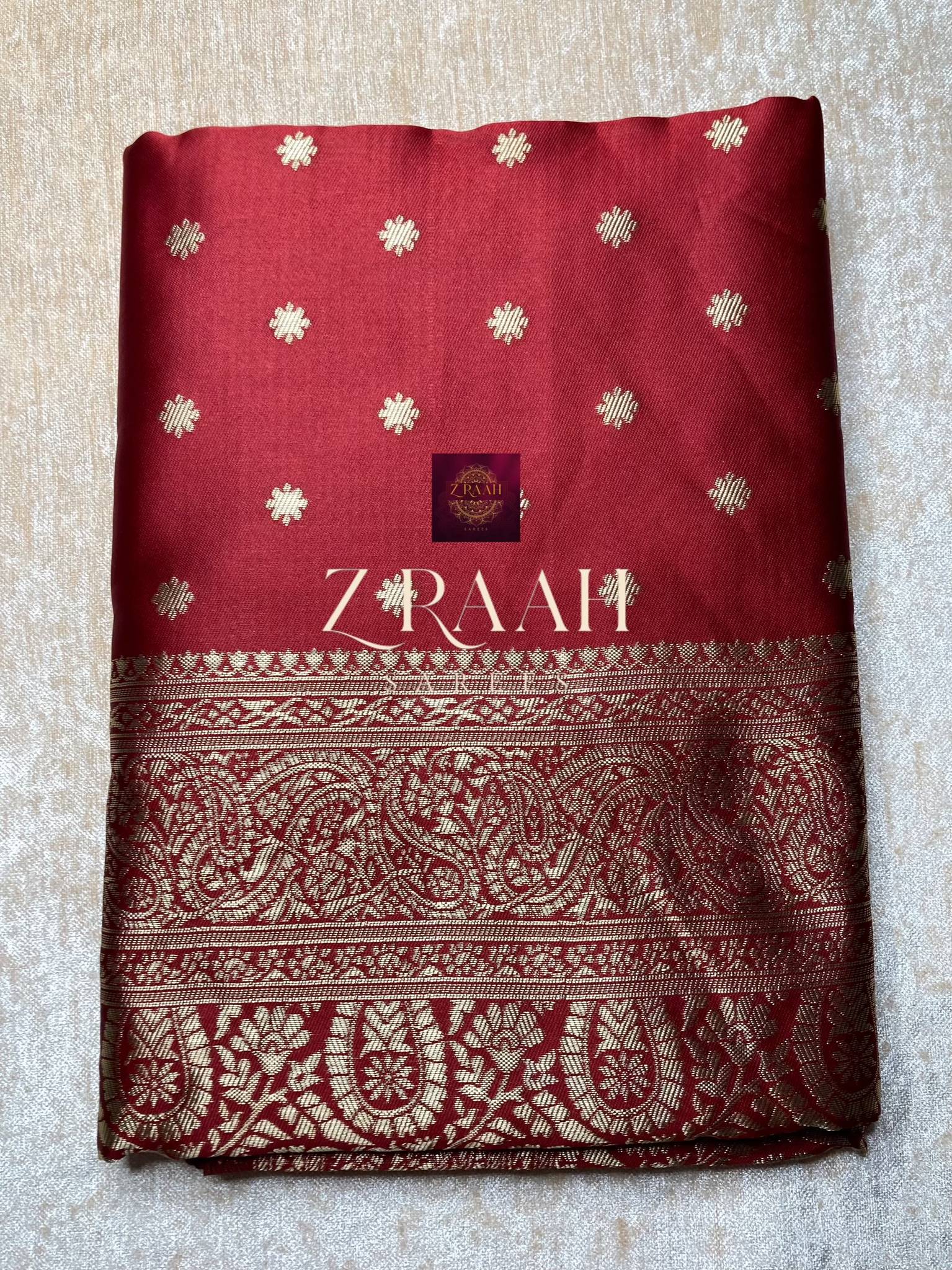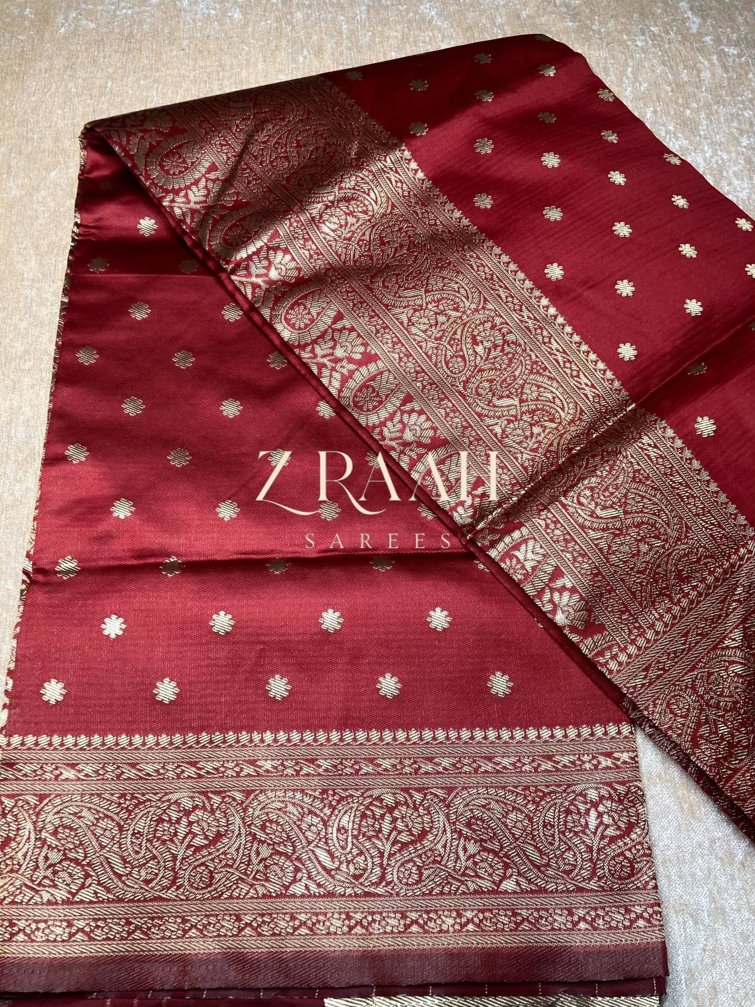The accompanying blouse is equally exclusive, featuring detailed jacquard work that complements the saree beautifully. Whether you're attending a wedding, festival, or formal event, this saree is the ultimate choice for a graceful and stylish appearance.
